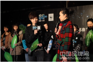 主要赞助商之一,MARCCASNE(玛卡西尼男装)执行总裁丁耿著就环保话题接受电视台专访,并与WWF中国区首席代表JimGradovill(关德辉)亲切交谈。